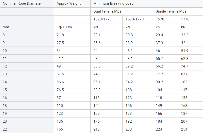 3. 6×19S+FC,6×19S+IWR, 6×19W+FC,6×19W+IWR, 6×5Fi+FC,6×25Fi+IWR, 6×9Fi+FC,6×29Fi+IWR, 6×26SW+FC,6×26SW+IWR, 6×31SW+FC, 6×31S+IWR,