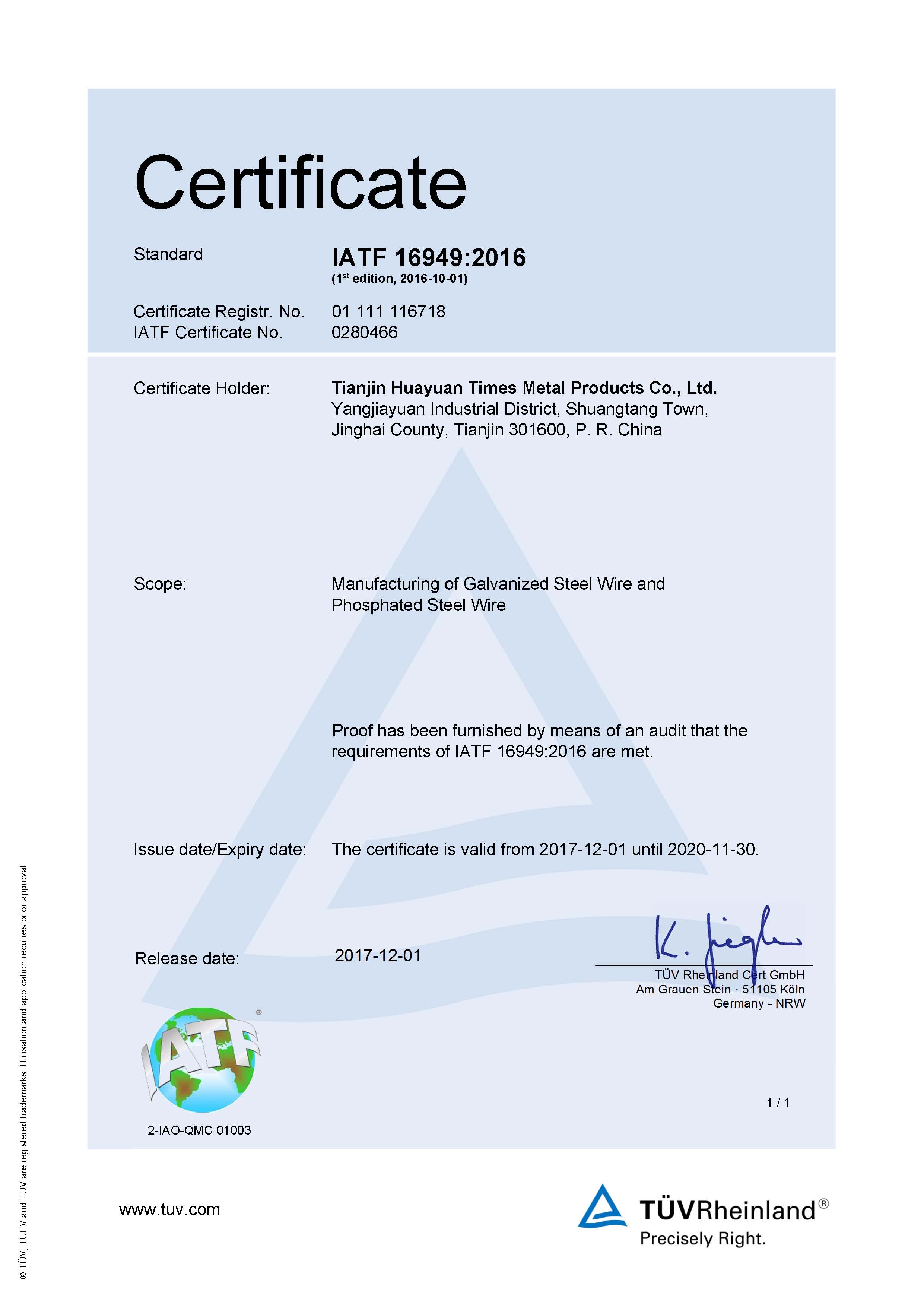 4. Certificación: ISO9001, ISO 16949; ISO 14001