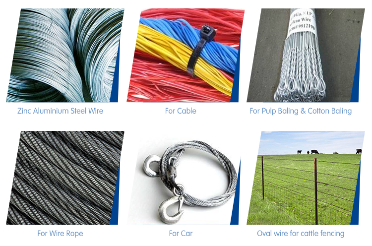 Grado de acero: Q195; Q235; 1006; 1018; 1008, etc. Lugar de origen: Tianjin, China Tiempo de entrega: 22-30 días Embalaje de alambre de acero: embalaje de bobina Tipo: galvanizado por inmersión en caliente o electro galvanizado Aleación o no: No aleación Resistencia a la tracción del alambre de acero: baja: 300 Mpa--500 Mpa Mediano 400-600 Mpa Alto 600-900 Mpa Extra Alto 900-1100 Mpa Recubrimiento de zinc de alambre de acero: bajo min 40g / m2 Medio min 90g/m2 Alto min 200g/m2 Extra Alto min 300g/m2 Diámetro del alambre de acero: 0.3mm-3.8mm Aplicación de Stee Wire: malla, cerca Puerto de salida: Xingang, China